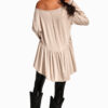 Nuestra amada Polera Granada es ese básico canchero que no te vas a querer sacar. Con un escote en V topísimo que estiliza y una caída fluida espectacular, destaca por su corte tipo peplum en punta y ese volado lleno de movimiento que le da un aire VOHEMIO único. Sus mangas largas con puño marcado terminan de armar un diseño relajado pero con mucha actitud, ideal para elevar cualquier look diario con total comodidad.